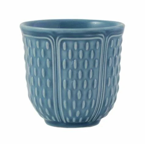 Met de blauwe Gien espressokop uit de Pont aux Choux-serie serveert u op zeer bijzondere wijze een kopje espresso. Het kopje is vervaardigd van aardewerk en heeft een inhoud van 85 ml. De serie kenmerkt zich door de licht golvende structuur aan de buitenzijde. Gebruik de Gien Pont aux Choux espressokop voor het serveren van koffie.