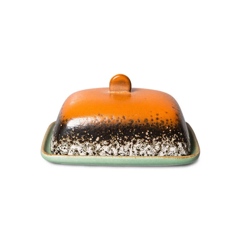 De HK Living 70’s Meteor botervloot is gemaakt van meerkleurig aardewerk. De retro boterschaal heeft een lengte van 15,5 cm, een breedte van 12 cm en is 7,5 centimer hoog. Gebruik de botervloot om boter koel te houden en stijlvol te serveren op tafel