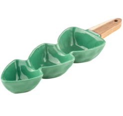 Beleef de feestdagen in stijl met deze kerstcollectie van Ladelle. De groene porseleinen serveerschaal Jingle Berry brengt een elegant en uniek design naar uw dinertafel. De serveerschaal heeft de vorm van een kerstboom en is afgewerkt met een handvat van acaciahout. De serveerschaal is 38 cm lang, 11 cm breed en 5 cm hoog.