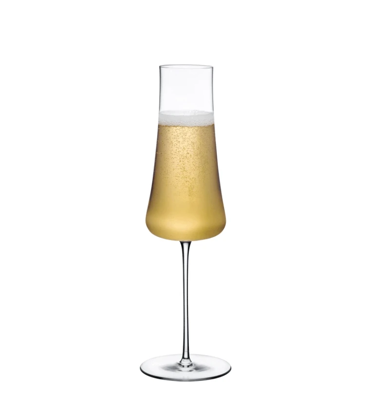 Het Nude Stem Zero Volcano champagneglas is gemaakt van loodvrij kristalglas. Het glas heeft een inhoud van 300 ml, een diameter van 6,9 cm en een hoogte van 26 cm. Het glas is ontworpen voor het drinken van verschillende champagnes en mousserende wijnen.