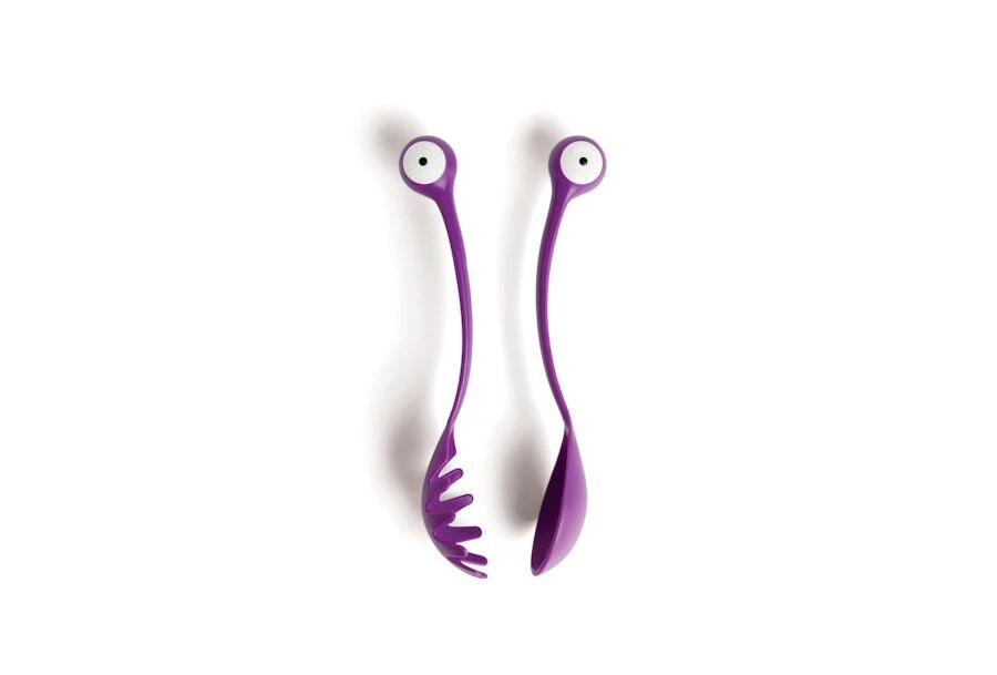 De Ototo Pasta Monsters pastalepels zijn gemaakt van paars kunststof. Het couvert is vormgegeven als de ogen van het spaghettimonster. Gebruik de pastalepels om pasta mee op te scheppen. De lepels zijn 29 cm lang en 8 cm breed.  Â