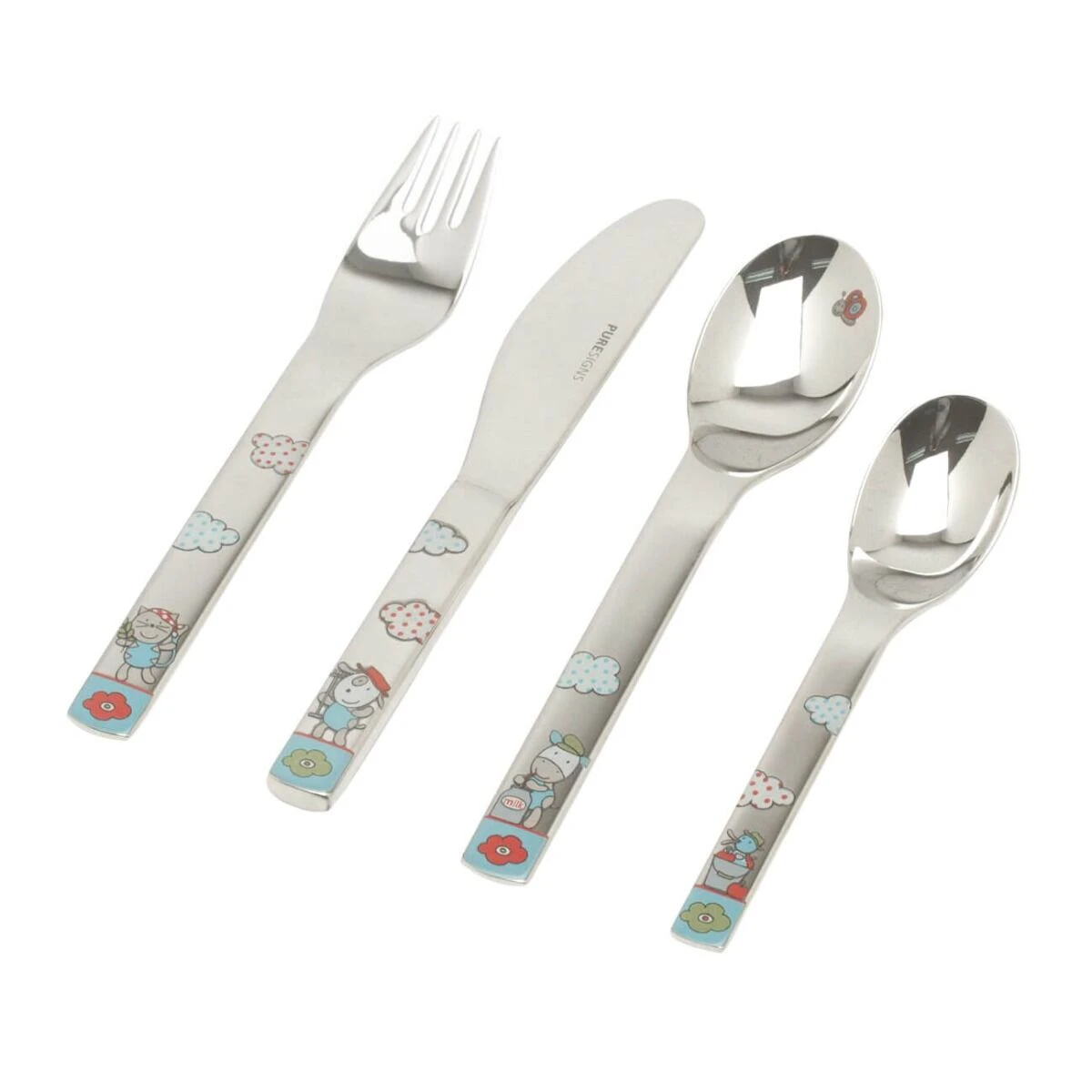 Het Puresigns One kinderbestek is gemaakt van 18/10 roestvrij staal en is de kinderversie van het Puresigns One bestek. Het bestek is voorzien van een leuke print op de stelen en heeft afgeronde punten waardoor het bestek veilig door kinderen te gebruiken is.