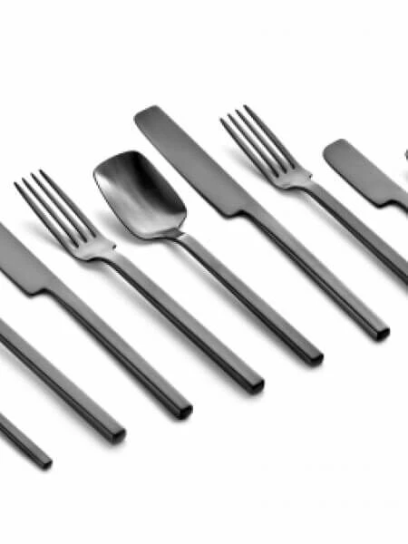 Het Serax HEII bestek heeft Japanse invloeden, met rechte lijnen en fijne afrondingen als contrast, ontworpen door de Nederlandse designer Marcel Wolterinck. Het bestek is gemaakt van roestvrij staal, heeft een donker grijze kleur en ligt prettig in de hand.