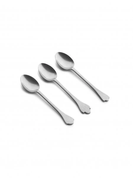De Serax Merci Mix 4-5-6 koffielepels zijn gemaakt van roestvrij staal dat een stonewash-behandeling heeft gehad. Elk van de drie delen heeft een ander einde van de handgreep.