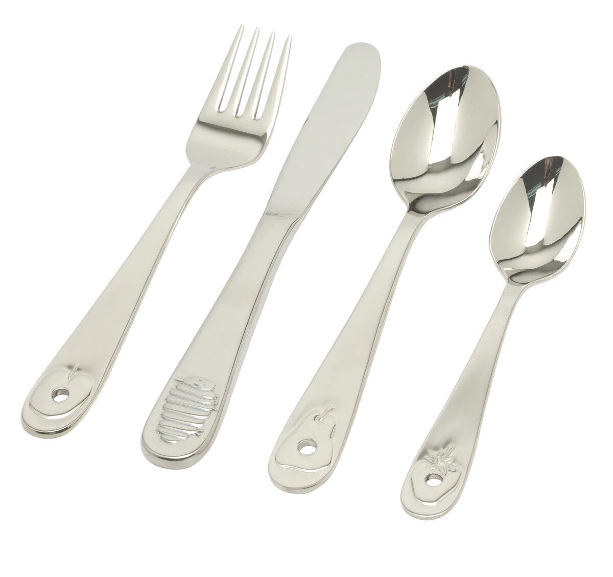 Met het Van Kempen & Begeer Junior kinderbestek eten ook de jongste eters met plezier mee. De bestekdelen zijn voorzien van vrolijke afbeeldingen. Het bestek is vervaardigd uit hoogwaardig roestvrij staal dat goed bestand is tegen voedselzuren. Het formaat van onderdelen van het bestek zijn goed afgestemd op de kinderhand en -mond. Het mes heeft een afgeronde bovenzijde waarmee niet ‘gestoken’ kan worden. Tevens is het mes botter waardoor het veiliger is in gebruik door kinderen.